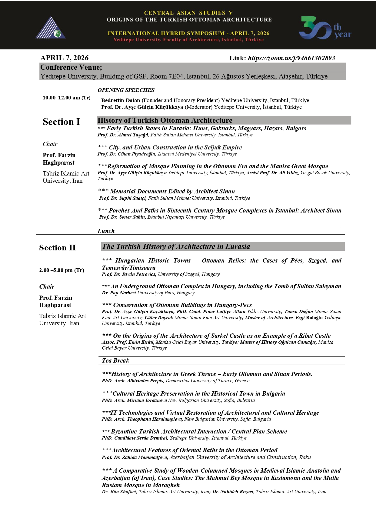 6-10 Nisan 2026 tarihleri arasında yapılacak seminerler ve sempozyumun (7 Nisan 2026) programı ektedir. Aşağıdaki linke tıklayarak online katılabilirsiniz.
