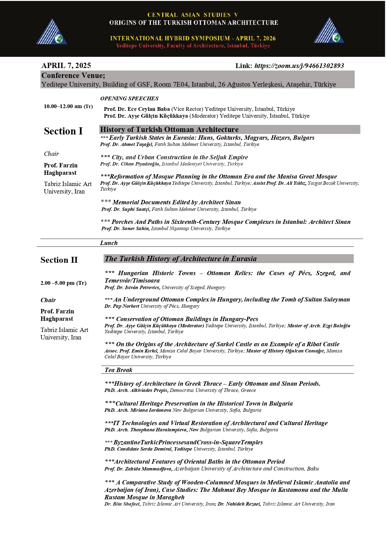 6-10 Nisan 2026 tarihleri arasında yapılacak seminerler ve sempozyumun (7 Nisan 2026) programı ektedir. Aşağıdaki linke tıklayarak online katılabilirsiniz. Link: https://zoom.us/j/94661302893